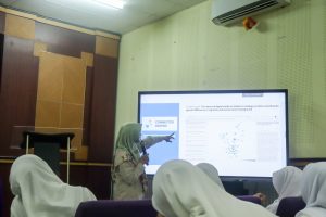 Kegiatan ini juga dilengkapi dengan sesi praktik pengajuan akun dan penggunaan Turnitin, dipandu langsung oleh Nada Auliya Sarasawitri selaku petugas layanan research tools. Pada sesi tersebut, mahasiswa berhasil melakukan pengajuan akun sekaligus mencoba penggunaan Turnitin sesuai arahan.