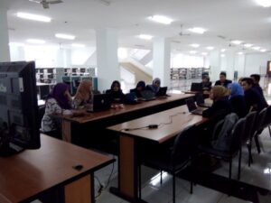 Pelatihan pengembangan Repository bagi mahasiswa magang dari Universitas Negeri Malang (UM), Universitas Brawijaya (UB) & Universitas Airlangga (UNAIR) Surabaya oleh Pustakawan Pusat Perpustakaan UIN Maliki Malang, pada pelatihan ini didampingi oleh ibu Dian Anesty, SIIP dan ibu Heni Kurnia Ningsih, S.IP